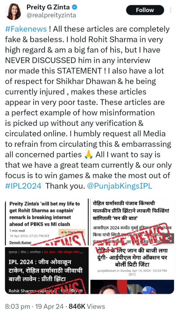 However, she later clarified that she never made such a statement and that they were all false reports.