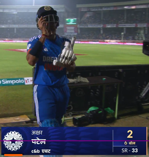 However, his batting today was just not clicking right from the start. Coming out to bat after Surya’s wicket when India was almost there with a score of 194-5, Axar’s task was clearly cut out.
